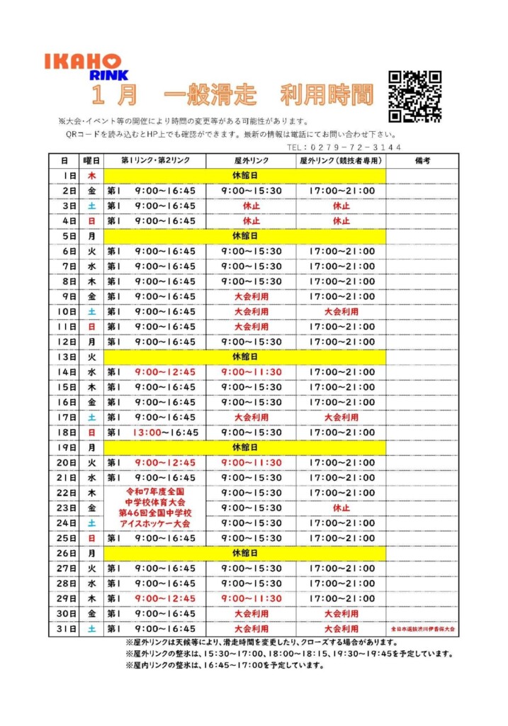 \スケート/IKAHO RINK 伊香保リンク(令和8年1月営業状況)
